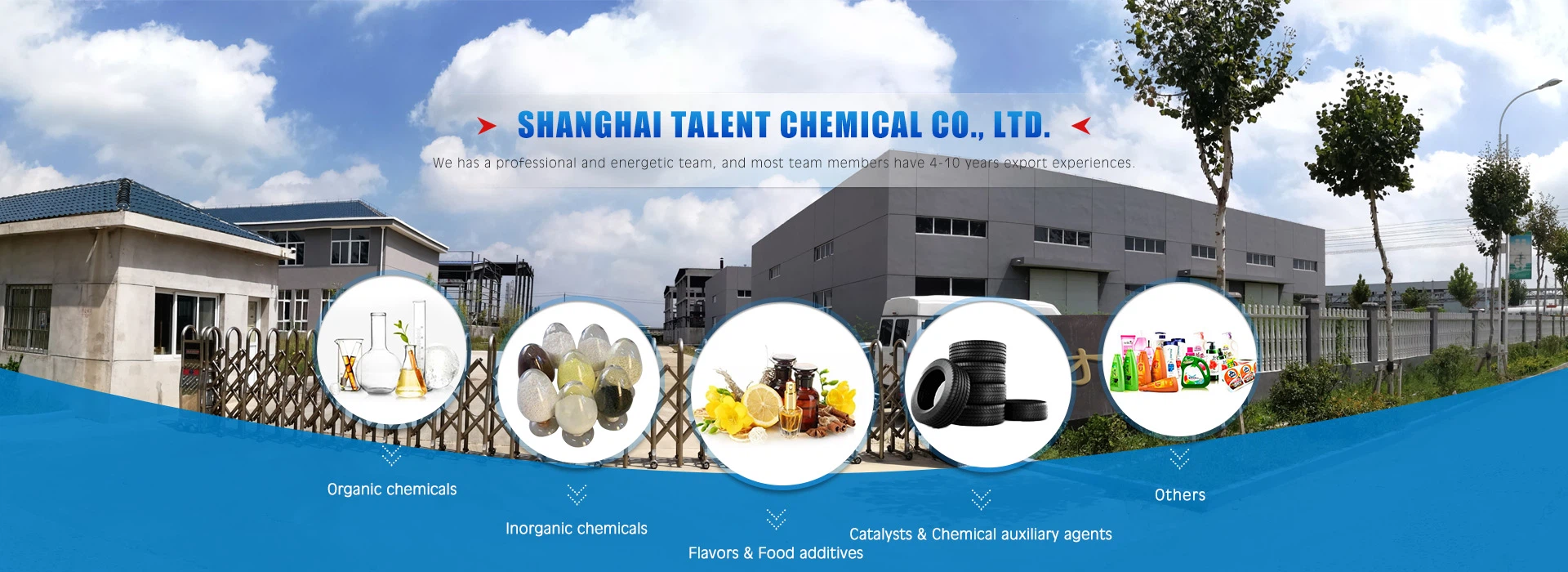شنگھائی ٹیلنٹ کیمیکل کمپنی لمیٹڈ چین کے اقتصادی مرکز میں واقع ہے اپنی مرضی کے مطابق مصنوعات کی خدمت فراہم کریں. فی الحال، ہم بنیادی طور پر نامیاتی کیمیکلز، غیر نامیاتی کیمیکلز، ذائقے اور فوڈ ایڈیٹوز، کیٹالسٹ اور کیمیائی معاون ایجنٹس وغیرہ برآمد کرتے ہیں۔